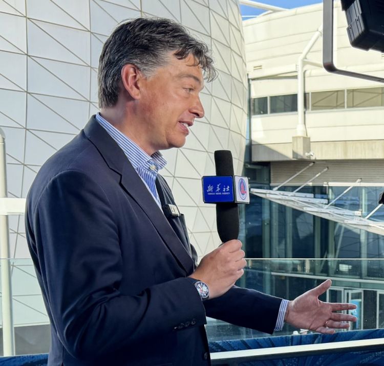 图为澳大利亚网球公开赛(澳网)首席商务官塞德里克·科内利斯在选定新华社记者采访。新华社发(归清摄)